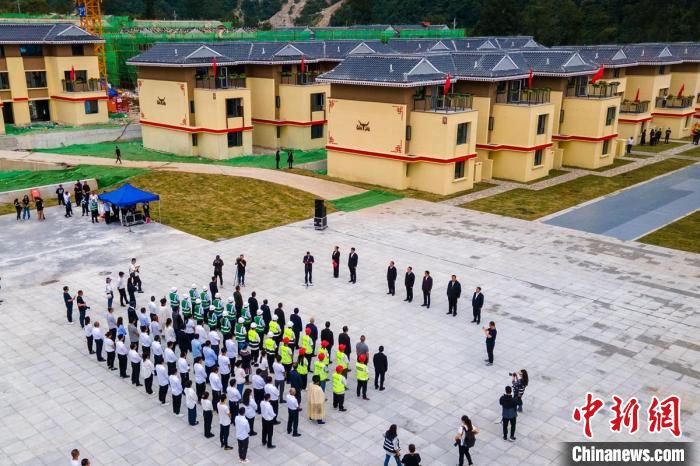瀘定縣磨西鎮大杉樹村(幸福新村)集中安置點首批新房交付儀式現場。中新網記者 劉忠俊 攝
