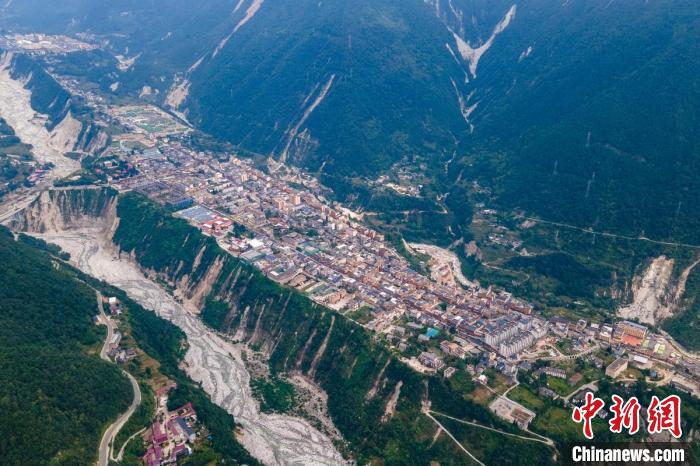 航拍加快災后重建的瀘定磨西鎮全景。中新網記者 劉忠俊 攝