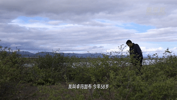 多年投身沙化草原治理的牧民卓瑪加布在黃河瑪曲段干流沿岸一處沙化草原治理點查看他參與種植的植被生長情況(7月5日攝)。新華社記者 陳斌 攝