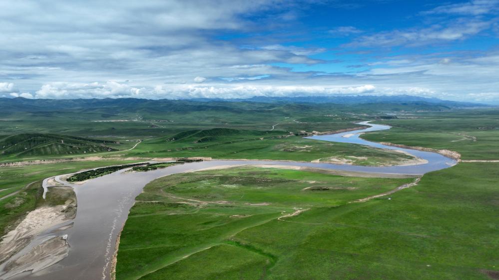 瑪曲縣黃河兩岸綠意盎然(7月6日攝)。新華社記者 陳斌 攝