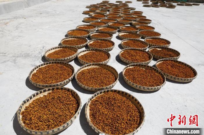 村民正在分裝高原雪菊干花。侯明宏 攝