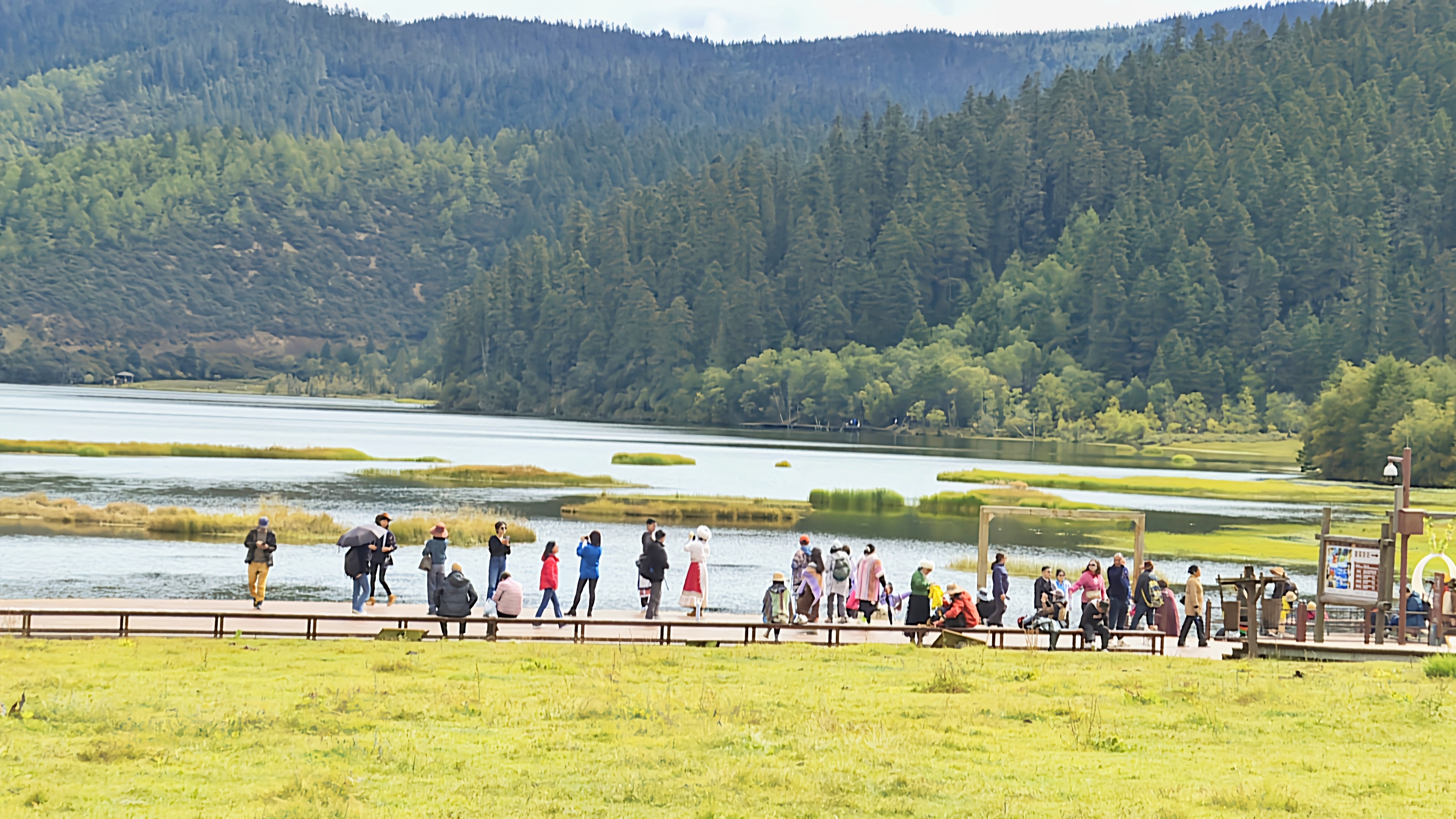 秋日的普達措國家公園層林盡染、色彩斑斕,高山草甸、原始森林與湖泊濕地構成了一幅幅美麗的畫卷,屬都湖棧道上人群熙熙攘攘。“我是第一次來香格里拉旅游,香格里拉給我的感覺就是,這里的生態環境保護得很好,綠水青山,很值得來游玩。”游客宋女士表示。