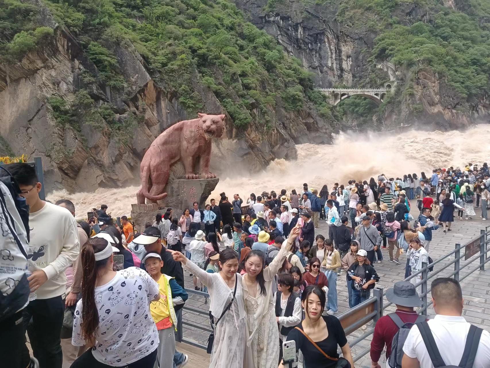 日前,虎跳峽景區游人爆滿,各項旅游接待指標全面提升。“目前游客人數還在持續攀升,預計國慶節中期到達頂峰。”景區工作人員介紹道。假期前三天景區已接待游客3.11萬人。