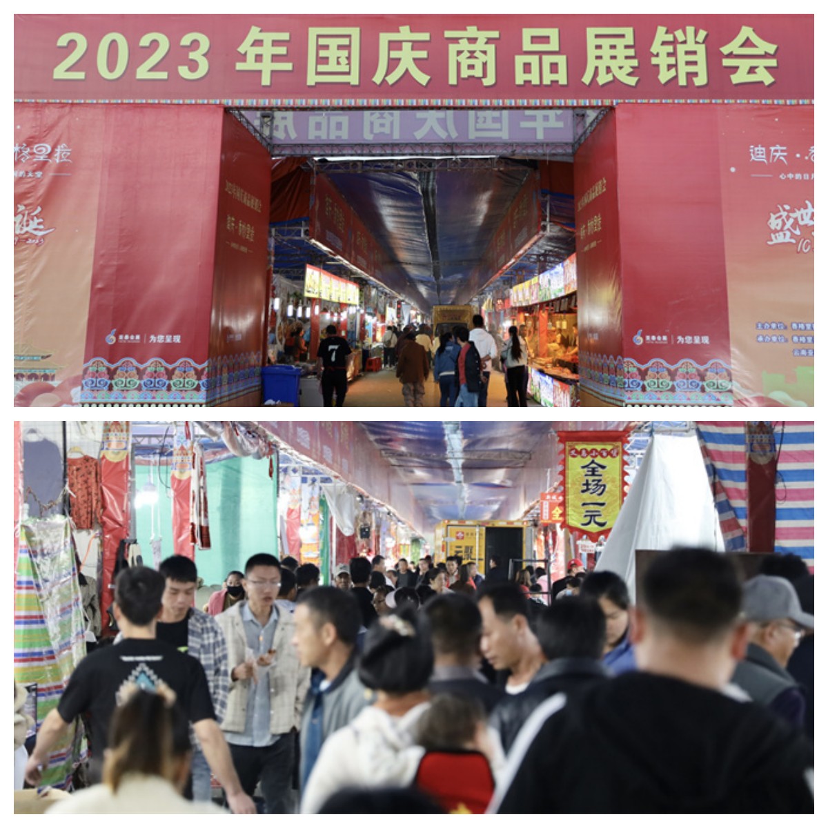“雙節(jié)”期間,香格里拉市區(qū)納赤東路上的國慶商品展銷會(huì)內(nèi)人頭攢動(dòng)。