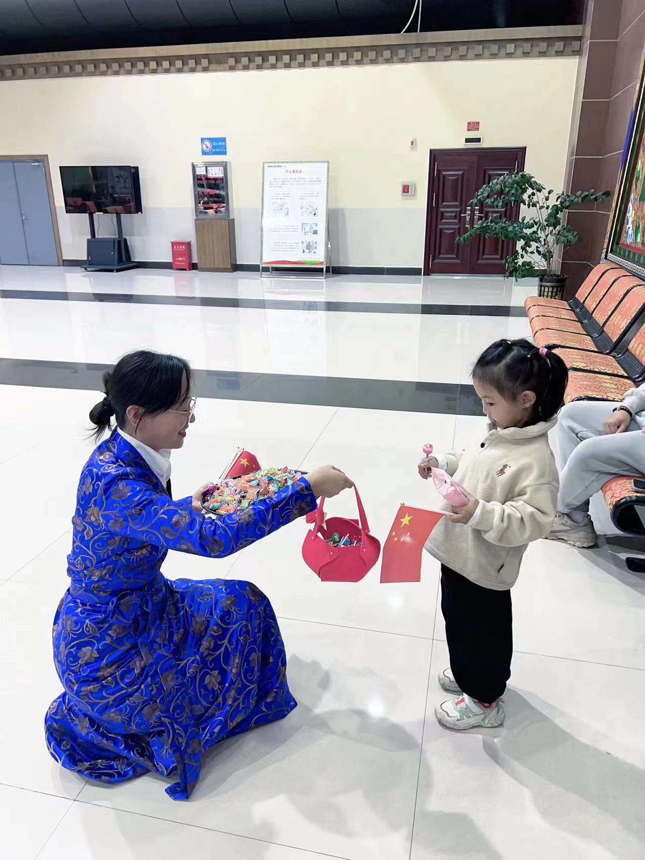 踐行真情服務,提高服務質量。節日期間,迪慶機場以力保航班正點率為重點,始終堅持將“旅客滿意”作為衡量服務工作的標準,在候機樓設立志愿者服務站,積極為老、弱、病、殘、孕等特殊旅客提供服務。同時,工作人員身著民族服飾開展特色服務,給旅客精心準備了具有云南當地特色的月餅及糖果,在旅客候機途中,為旅客準備了精彩的投壺游戲,并為參加游戲的旅客送去小禮品,讓旅客在歡聲笑語中度過漫長候機時間,并向旅客發放小紅旗和“我愛中國”小徽章,送上真誠的節日祝福,點燃了更多人的愛國情懷。