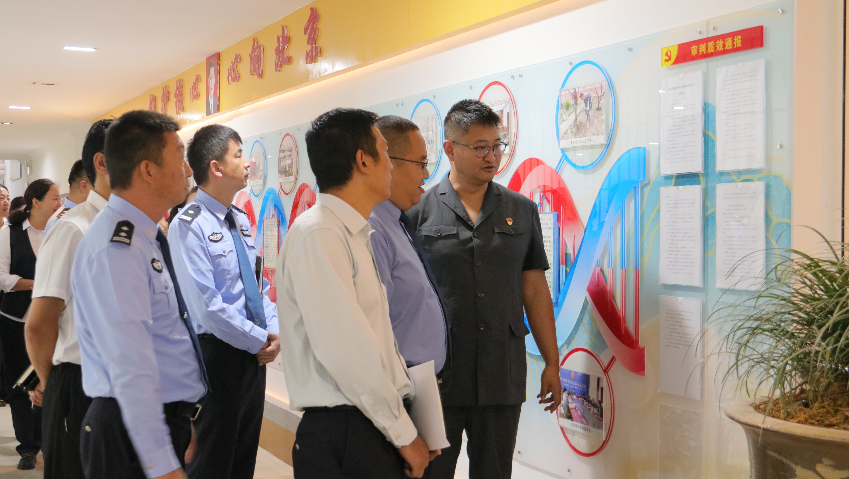 與法同行“零距離”。升旗儀式后,全體同志跟隨講解員進入審判大樓,參觀了縣人民法院訴訟服務中心、黨建文化長廊,詳細了解了“蘭韻傈鄉·紅色天平”黨建文化品牌建設的特色亮點,通過參觀學習打開了政法系統黨組織互幫互學、共創共贏的新局面。并現場體驗模擬法庭,將法院庭審的真實場景通過情景再現的形式,直觀地展示給在場的黨員干部及工作人員,進行“以案說法、以案示警”。通過“沉浸式體驗”,讓全體黨員親身感受了審判工作氛圍,引導大家進一步筑牢政治忠誠,強化法治思維,牢記初心使命,立足崗位職責,扎實推進全縣政法工作再上新臺階。