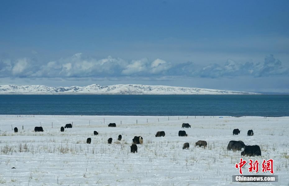 近日,受冷空氣影響,青海省部分地區(qū)迎來降雪,青海湖畔的草場披上了厚厚的白雪,成群牛羊在雪地覓食,與湛藍(lán)的湖水、遠(yuǎn)處屹立的雪山構(gòu)成一幅幅靜謐柔美的生態(tài)畫卷。