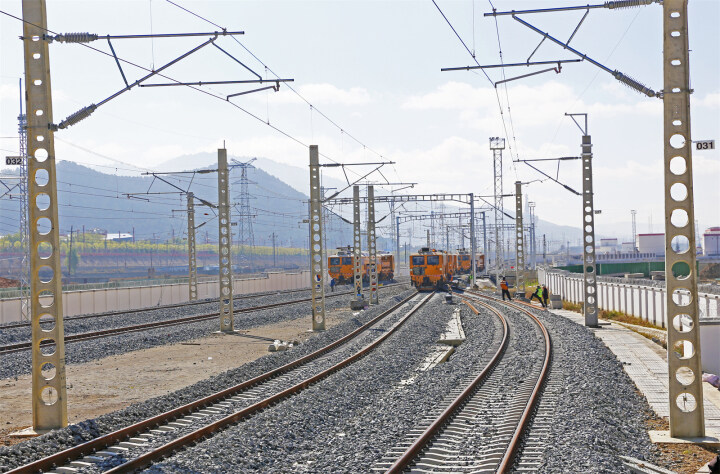 近日,記者在滇藏鐵路麗香段香格里拉站看到,現場正在進行大機搗固作業,工人們正緊抓施工進度,高效組織施工作業,全力以赴保障全線順利開通運營。