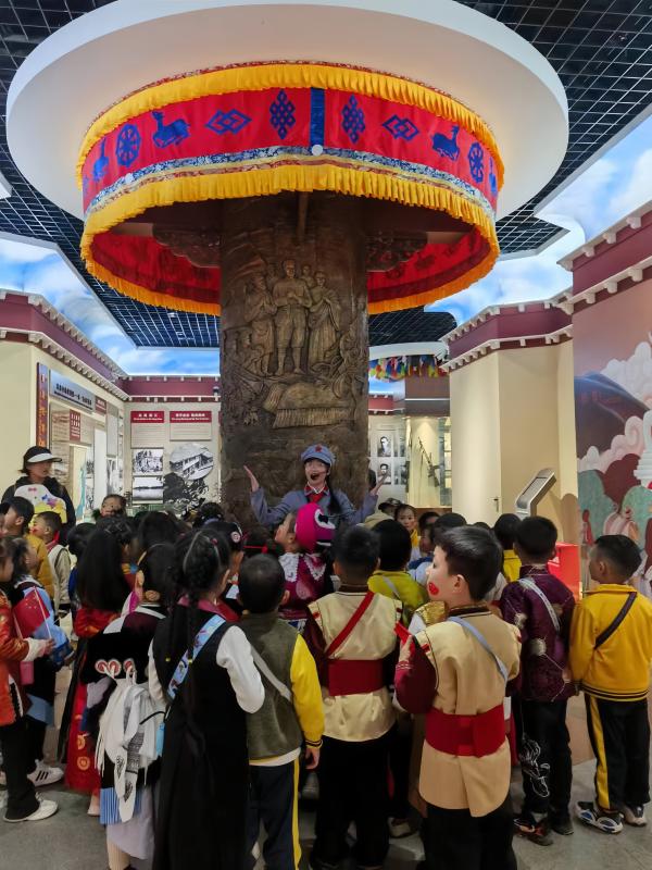 展館內,“格桑花小小講解員”進行著生動地講解,通過一件件文物、一幅幅圖片、一個個互動景觀訴說雪域高原上的紅色歷史,引導小朋友們體悟那段不平凡的崢嶸歲月,在行走的課堂里收獲知識和成長。