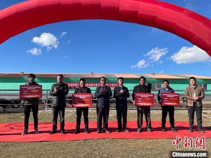 圖為同德縣牦牛產業園為牧民分發良種牛犢儀式現場。陳宗淇 攝