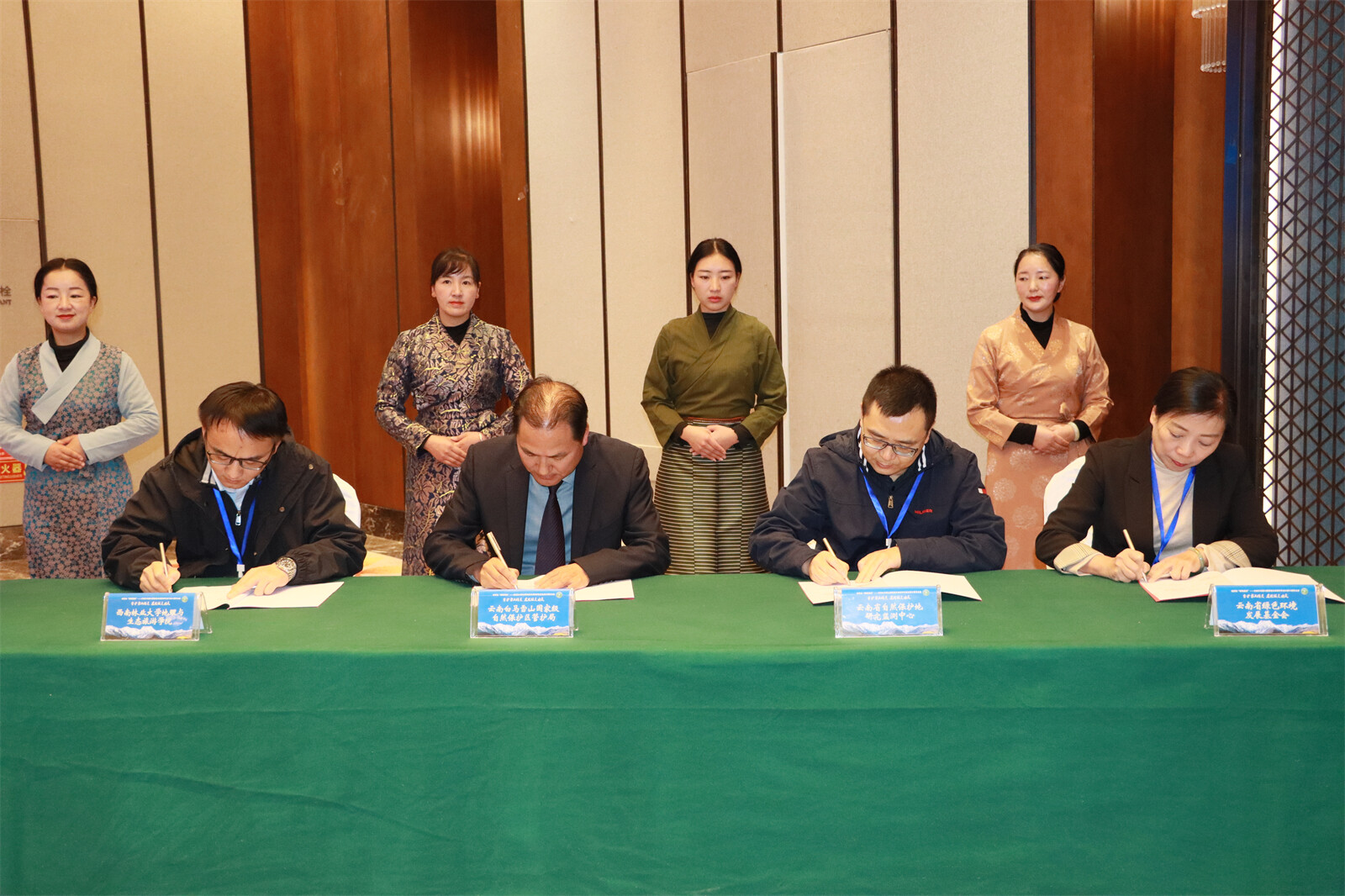 會上,云南白馬雪山國家級自然保護區管護局、西南林業大學地理與生態旅游學院、云南省自然保護地研究監測中心、云南省綠色環境發展基金會就社區保護地建設、滇金絲猴旗艦物種的保護工作等內容簽訂合作框架協議,參會嘉賓還就白馬雪山保護區工作、國家公園建設等主題進行分享交流。