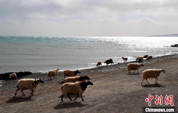 圖為青海湖斷崖處的羊群。薛蒂 攝