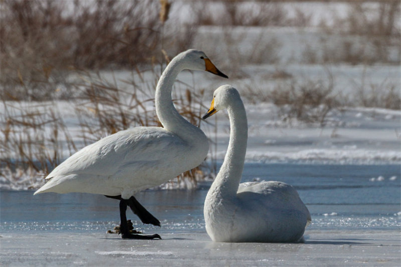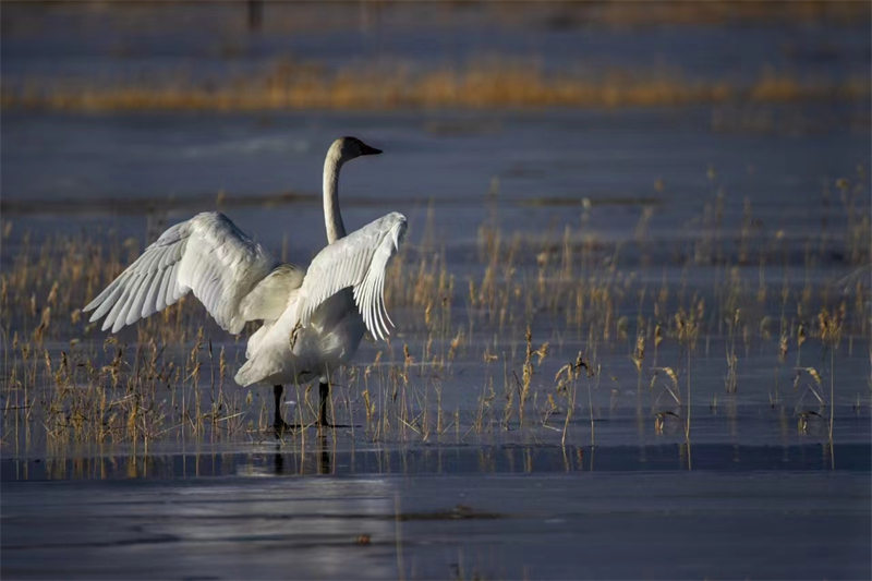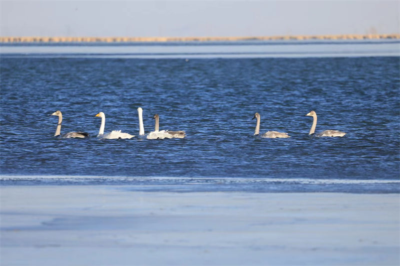 越冬大天鵝為柴達木盆地增添一份美麗與靈動。安子 攝