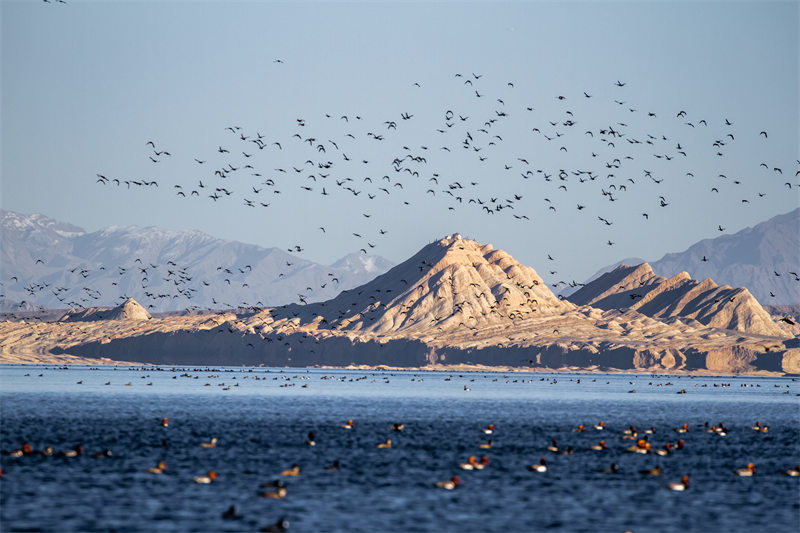 青海省海西州:首批越冬候鳥飛抵柴達木盆地托素湖
