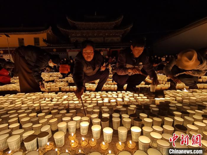 除了在寺院燃燈祈福,當地很多信眾也在自家院落燃燈。同仁市保安鎮的仁青對記者說,自己一家雖然住在城市,“但今天我的女兒專門回了老家,今晚會在老家院落的墻上燃燈,祈福平安吉祥。”