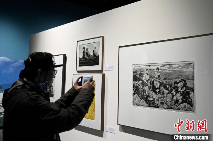 圖為游客參觀《追尋香格里拉——青藏高原東麓的遷徙史詩與流動對話》展覽。中新網記者 李嘉嫻 攝