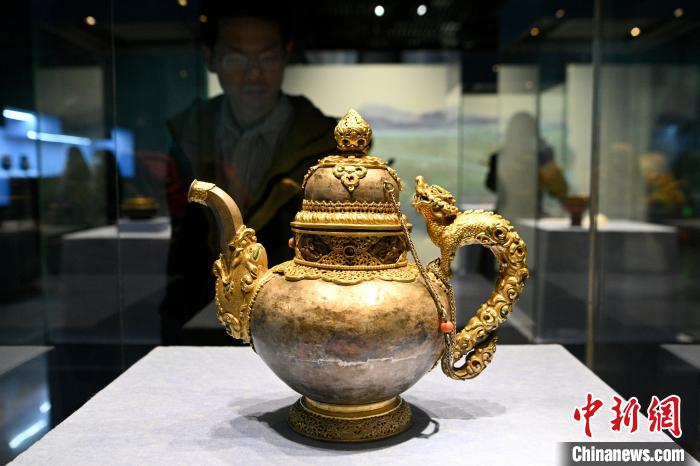 圖為展覽上展出的銀質嵌珠茶壺。中新網記者 李嘉嫻 攝