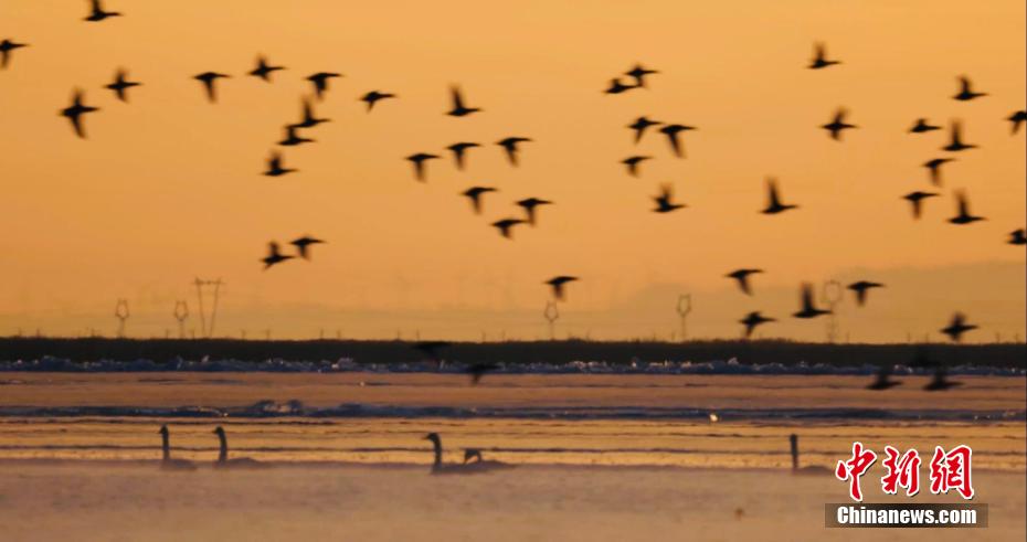 三九寒天,170余只天鵝飛抵柴達木盆地的青海省海西州青海可魯克湖-托素湖省級自然保護區,同時還有熊貓鴨、鵲鴨、普通秋沙鴨、綠頭鴨和潛鴨等。它們在這里嬉戲、覓食,給保護區增添了一道亮麗獨特的風景線。