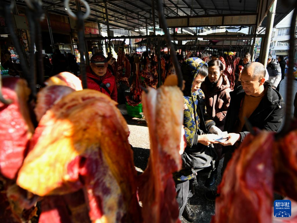 1月28日,游客在四川阿壩藏族羌族自治州茂縣農貿市場選購牦牛肉。新華社記者 王曦 攝