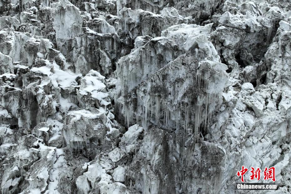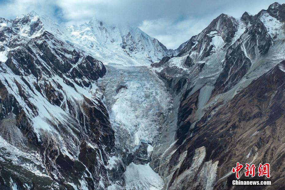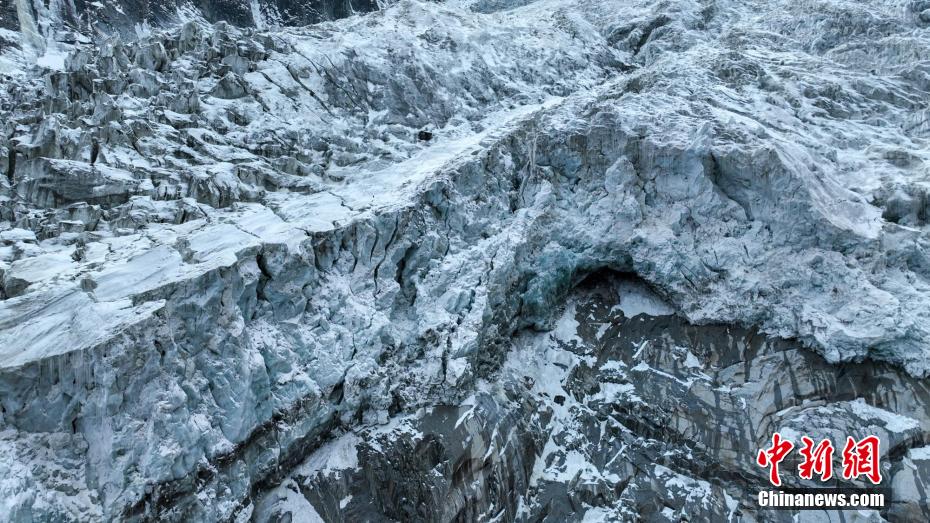 2月2日,四川省甘孜藏族自治州瀘定境內,一場雪后的貢嘎山披上了厚厚的“白紗”,在貢嘎山東坡順山而下的冰川沿海螺溝山谷綿延10多公里,就像一條“巨龍”盤在山谷中,十分壯觀。貢嘎山坐落于橫斷山系大雪山中段,主峰海拔7756米,被譽為蜀山之王。海螺溝冰川也是貢嘎山數十條冰川中規模最大、形態最美的一條。經歷了2022年“9·5”瀘定地震后,海螺溝景區道路等重建工作完成,步游道、旅游服務設施升級,游客逐步回升。航拍鏡頭下的海螺溝冰川粒雪盆下端的“冰川冰”。記者 劉忠俊 攝