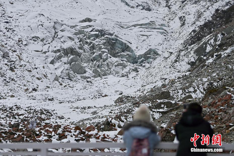 游客在海螺溝景區內觀賞冰川。記者 劉忠俊 攝