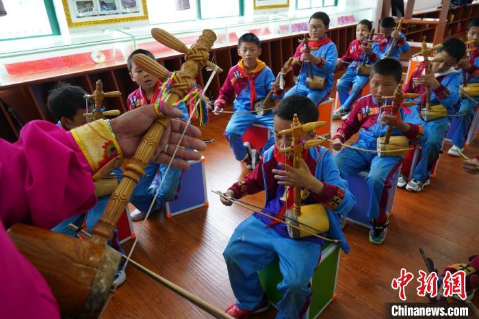 2023年6月21日,德欽縣第一小學的學生們在練習藏族傳統樂器弦子。中新社記者 劉冉陽 攝