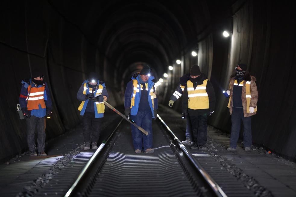 “路基變化、氣候波動……這些因素都是研究凍土影響的關鍵數據,一絲一毫的變化都會導致線路出現不同的問題。”工人們來到作業地點開始上道作業,張福強掏出一本快被翻爛的筆記本,一邊記下這次養護的氣候及線路數據,一邊和工友們向隧道深處走去。