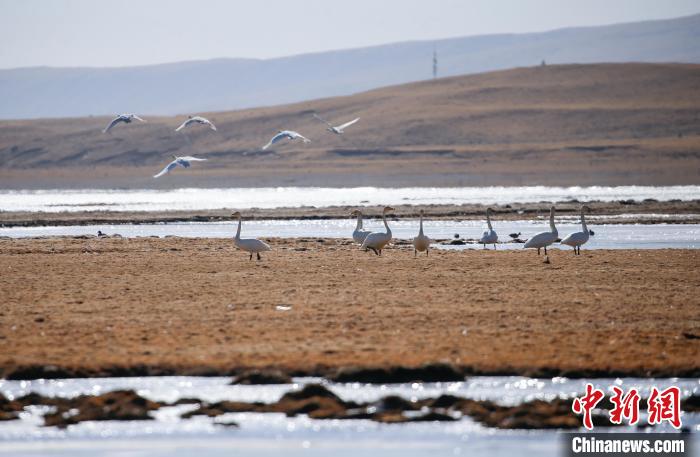 3月13日,青海省海南藏族自治州共和縣境內的青海湖泉灣濕地,大天鵝沐浴春日暖陽。隨著天氣轉暖,大天鵝、斑頭雁、赤麻鴨等水鳥聚集在青海湖泉灣濕地,時而振翅飛翔、時而戲水覓食,鳴叫聲不絕,為仍處于冰封的青海湖增添生機和活力。