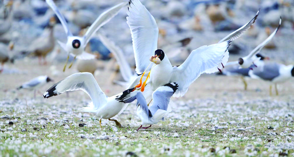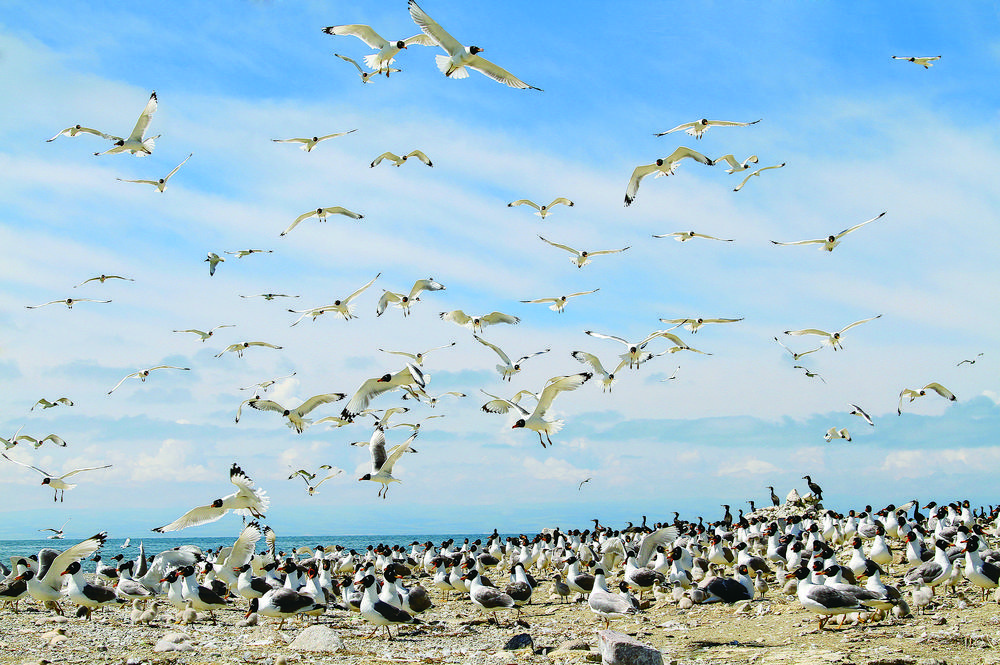 候鳥北歸,青海湖又將進入一年中最美麗的時節。浮想盛夏時節,棕頭鷗、漁鷗、斑頭雁、普通鸕鶿等水鳥,或成群在低空中擺著“隊形”,或“拖家帶口”在水面上嬉戲玩耍,或和洄游的湟魚上演魚鷗“大戰”,碧波蕩漾的青海湖將美得如詩如畫。(本版圖片除署名外,其他均由青海湖景區保護利用管理局提供)