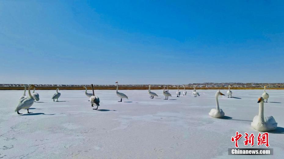上百只天鵝飛抵柴達木盆地可魯克湖越冬