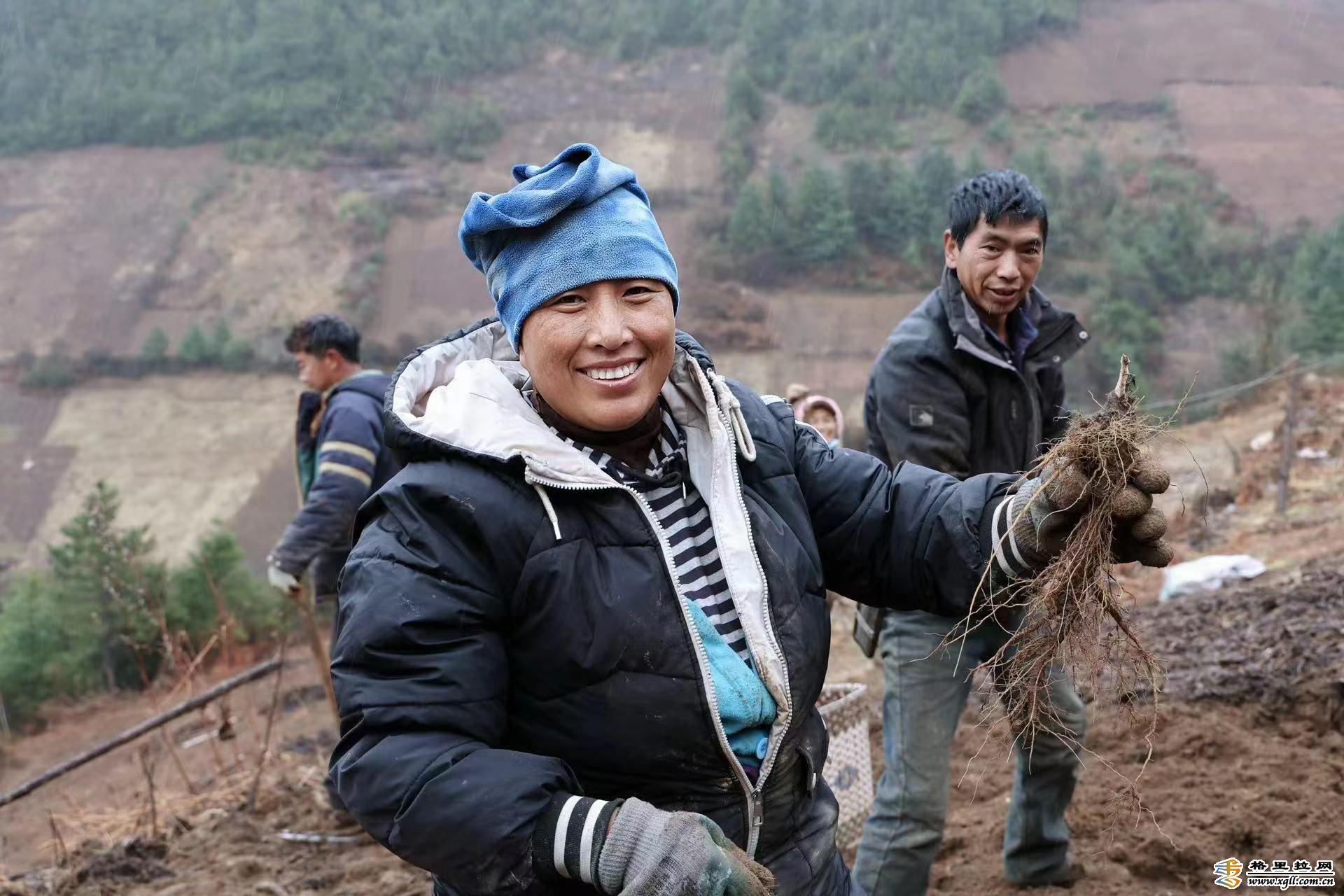 德欽縣拖頂鄉洛沙村中藥種植戶冒雨栽種中藥材