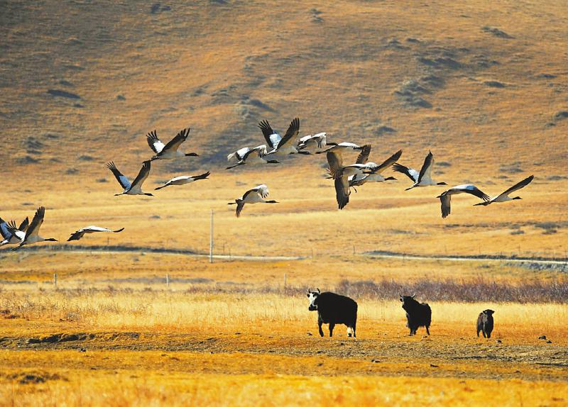 今年首批黑頸鶴飛抵若爾蓋