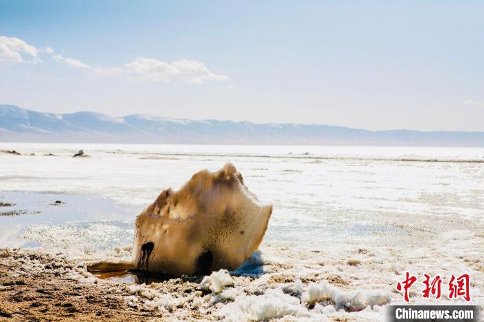 圖為青海湖湖冰在陽光下閃耀。趙海梅 攝