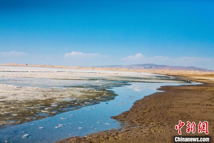 圖為消融的青海湖與遠處雪山形成醉人畫卷。趙海梅 攝