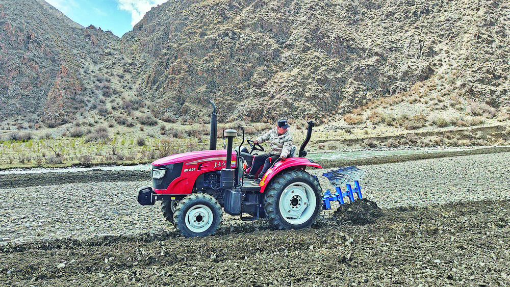 進(jìn)村時還在飄雪的結(jié)拉村,下午放晴了。跟隨駐村工作隊(duì)的腳步,我們來到結(jié)拉村的春耕現(xiàn)場,三輛拖拉機(jī)正在有序犁地,已經(jīng)犁過的地里,大家在有序地撒種。“群里說今天開始春耕了,我正好有時間就過來了,我們?nèi)膫€人輪流開,今天得犁30多畝地。”說著話,鬧布達(dá)杰的同伴接過了他的車?yán)^續(xù)作業(yè)。“村子里的青壯年基本都會開,誰有時間誰就過來。種地時,大家都不會偷懶,四五天時間,村子里的1500多畝地也就種完了。”鬧布達(dá)杰說。