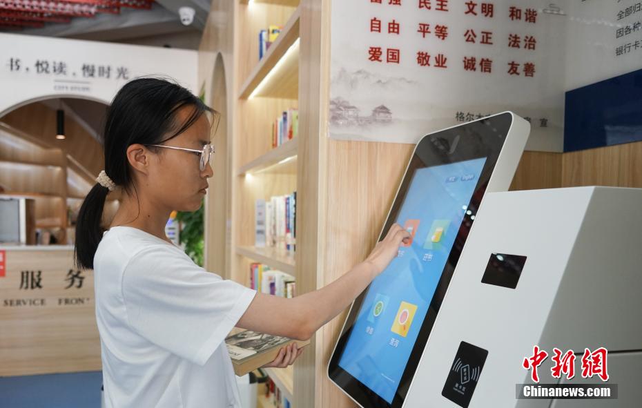 6月19日,市民在青海省海西蒙古族藏族自治州格爾木市一城市書房內借閱書籍。中新社記者 馬銘言 攝