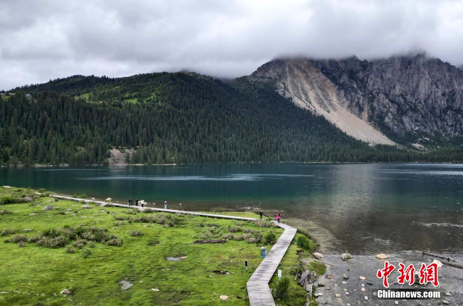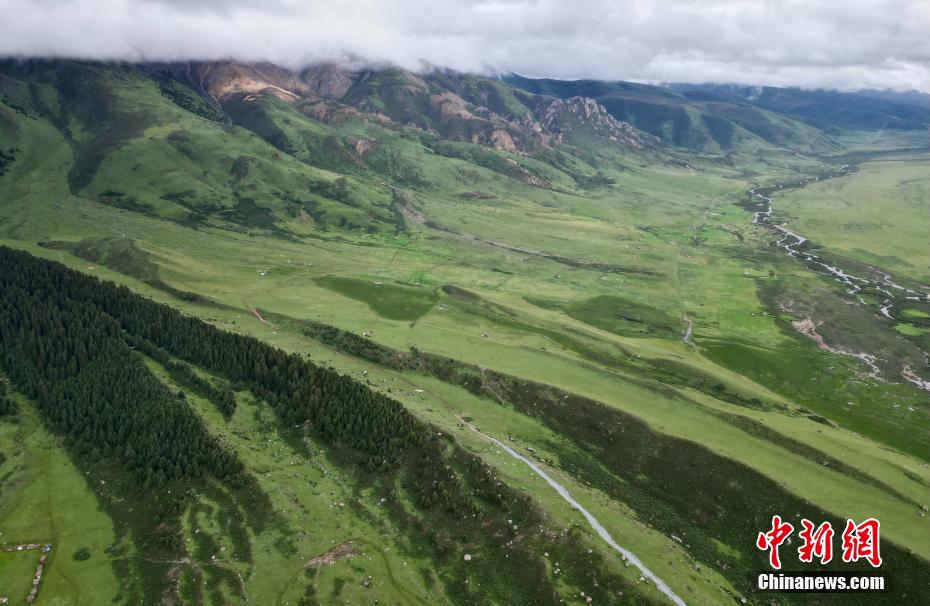 圖為6月27日,航拍措普溝景區。(無人機照片)中新社記者 王磊 攝