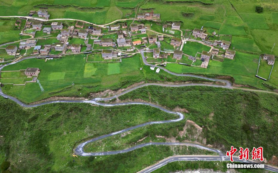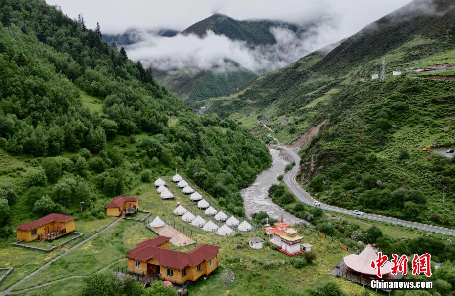 圖為6月27日,航拍措普溝景區內的達塔村。(無人機照片)中新社記者 王磊 攝