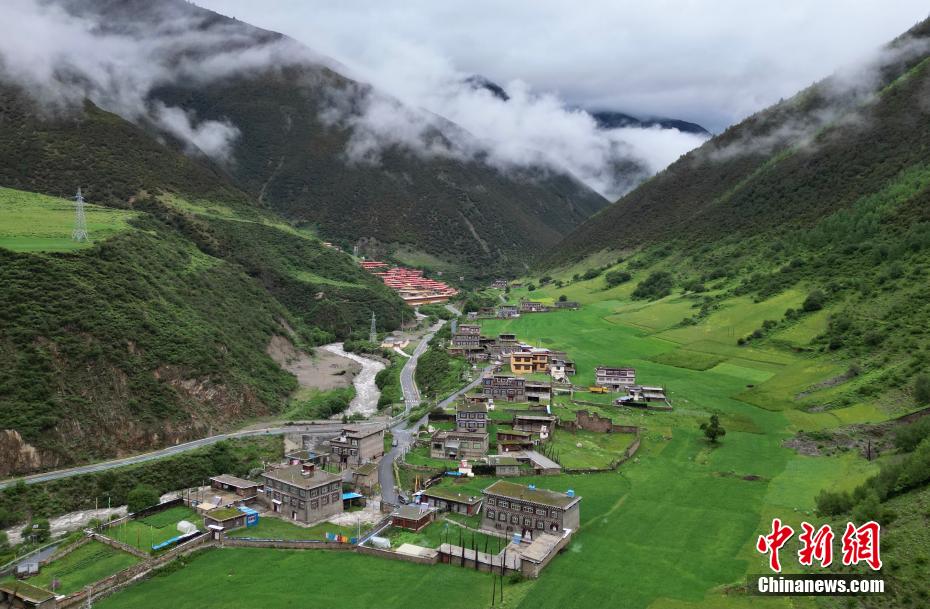 圖為6月27日,航拍措普溝景區內的達塔村。(無人機照片)中新社記者 王磊 攝