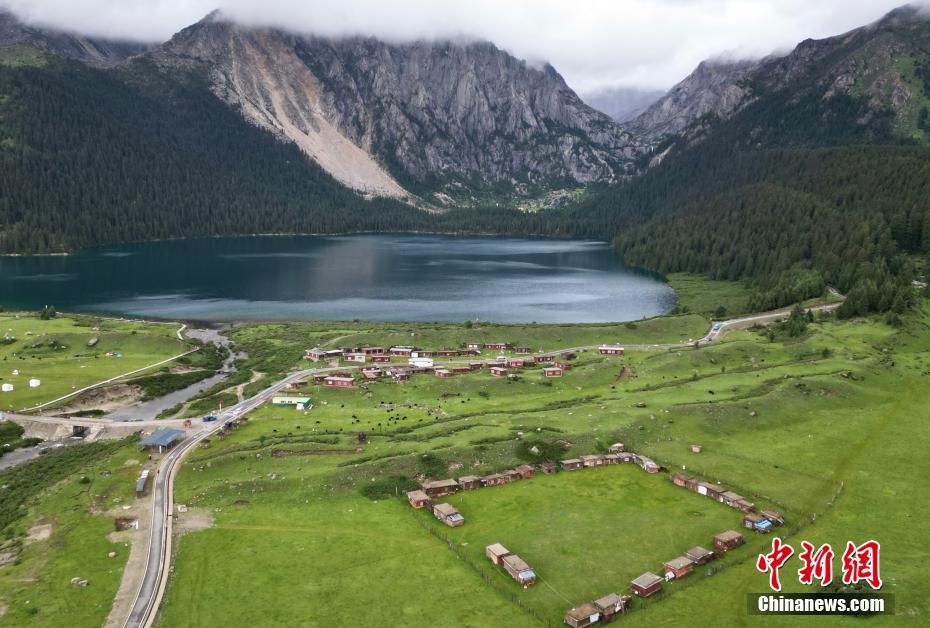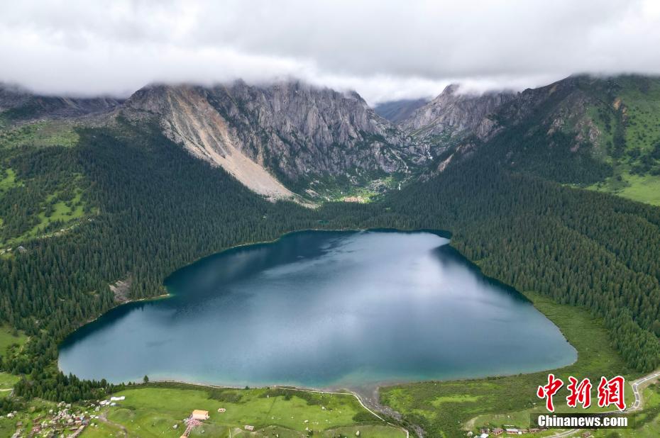 圖為6月27日,航拍措普溝景區。(無人機照片)中新社記者 王磊 攝