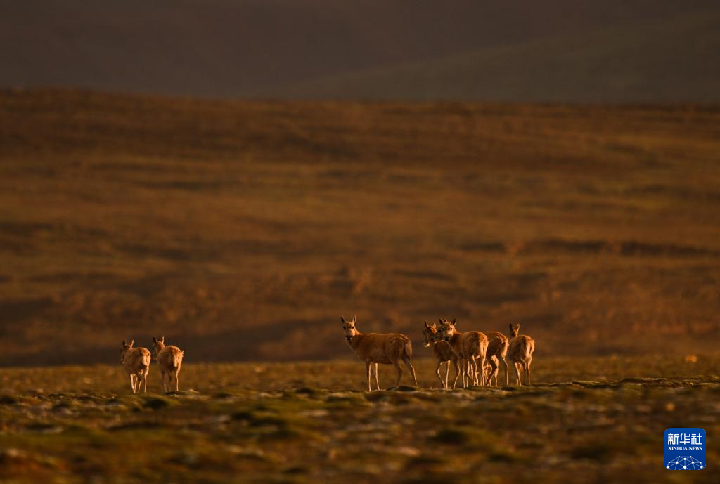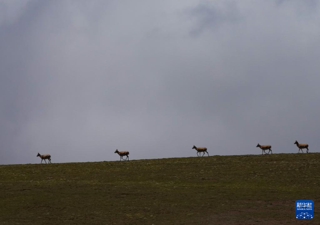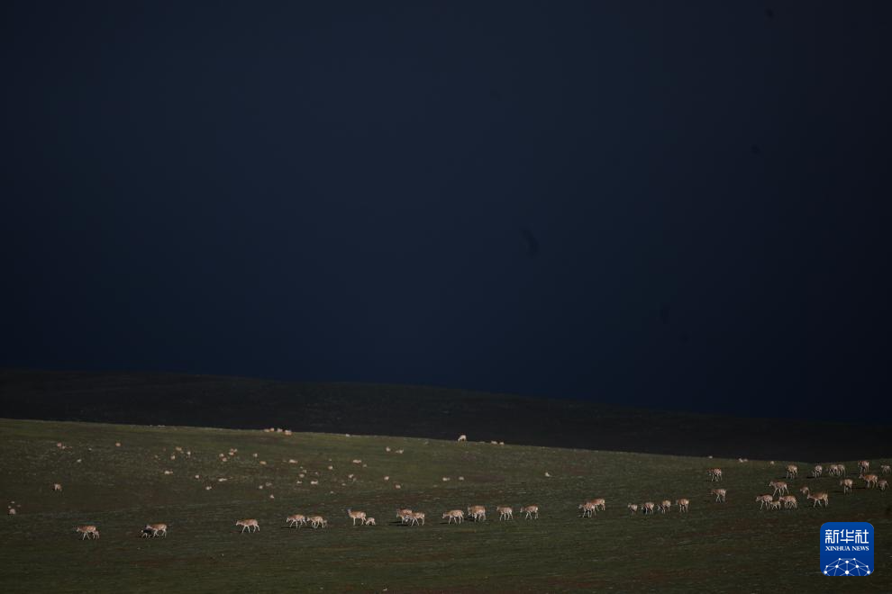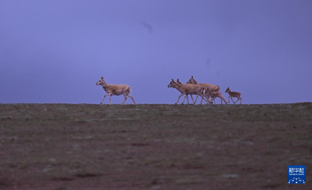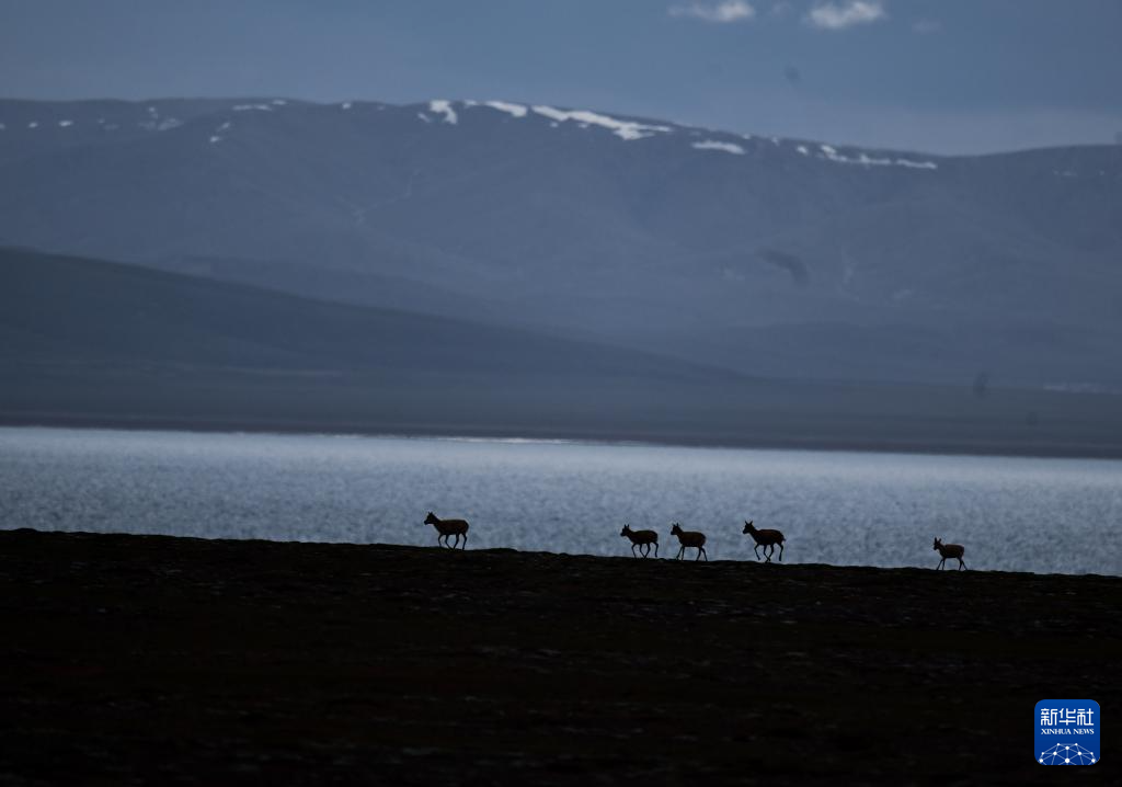 7月8日,在可可西里卓乃湖區域,幾只藏羚羊在活動。新華社 杜笑微 攝
