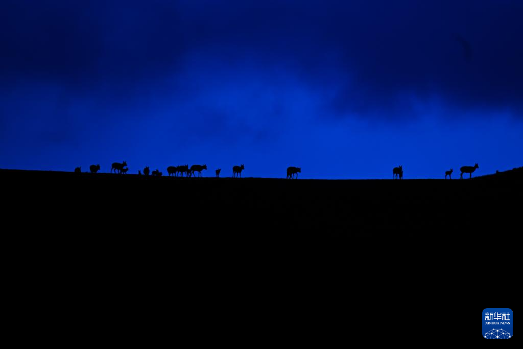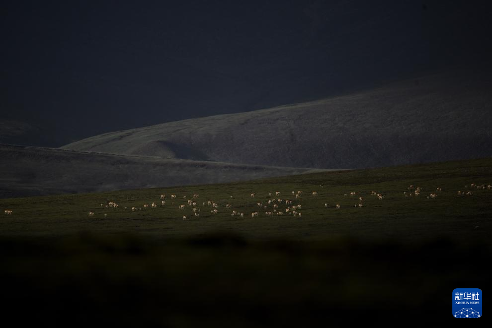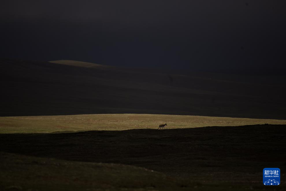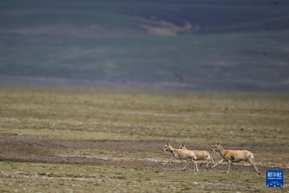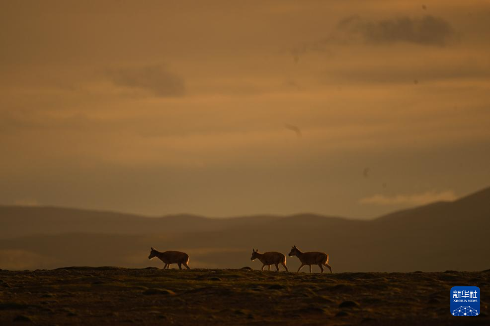 7月8日,在可可西里卓乃湖區域,幾只藏羚羊在活動。新華社 杜笑微 攝