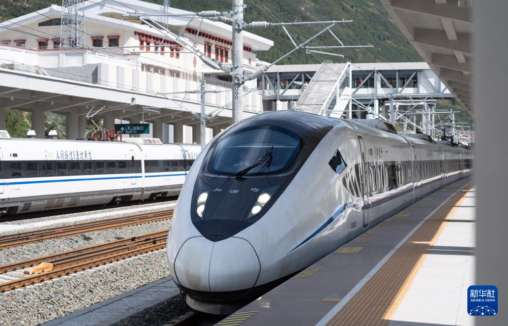 8月30日,首發列車C5818次駛出黃龍九寨站。新華社記者 江宏景 攝