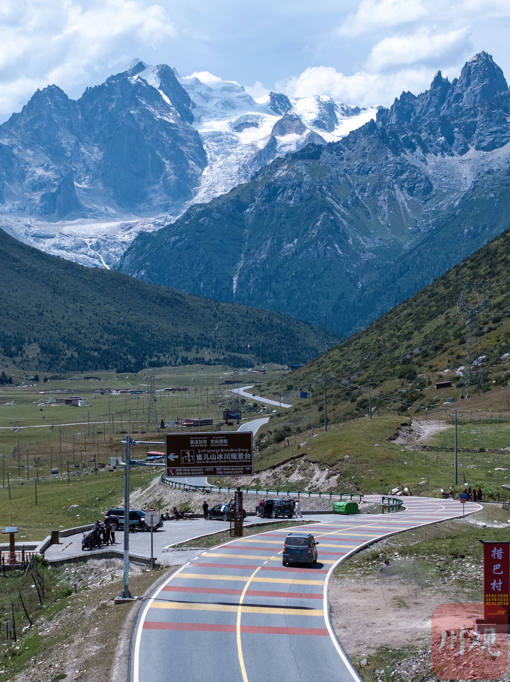 國道317線上遠眺雀兒山冰川。