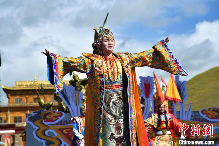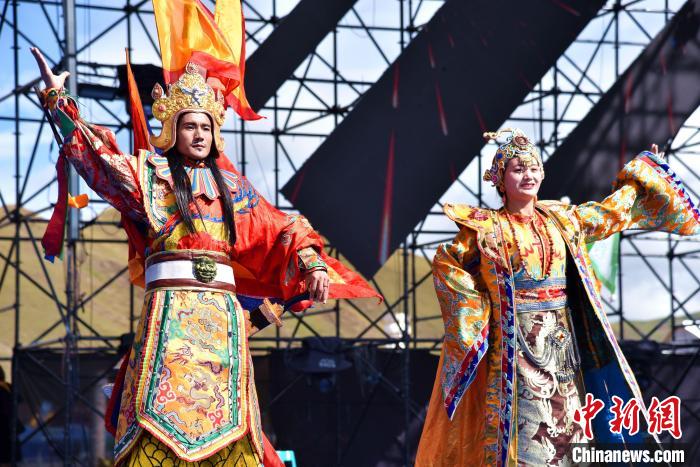 9月12日,在青海省果洛藏族自治州甘德縣柯曲草原,當地民眾展演史詩劇《嶺格爾七寶賽馬》。該史詩劇的編排靈感源自當地民間口口相傳的《格薩爾王傳》,說唱藝人通過吟唱與動作相結合的形式,講述了傳說中嶺國國王格薩爾賽馬稱王的故事。此間表演的民族服裝秀、才藝展示等,也彰顯了“中國格薩爾文化之鄉”的魅力。