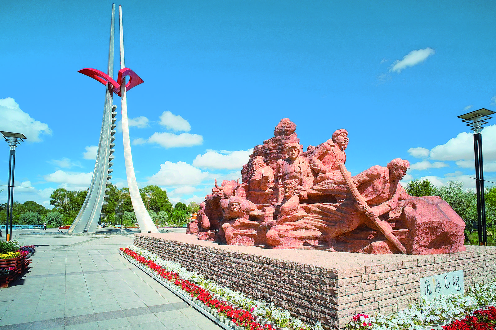 踏入位于青海省海西蒙古族藏族自治州格爾木市的將軍樓公園,那筑路忠魂雕塑仿佛是從歷史深處走來的巨人,以雅丹地貌的風蝕效果工藝精心雕琢而成,每一道紋路都像是被時光的風沙磨礪過。慕生忠將軍就站在那里,表情堅毅如磐石,揮舞的手像是要劈開歲月的迷霧,指引前進的方向。一旁的工程師鄧郁清先生目光炯炯,透著智慧與果敢。