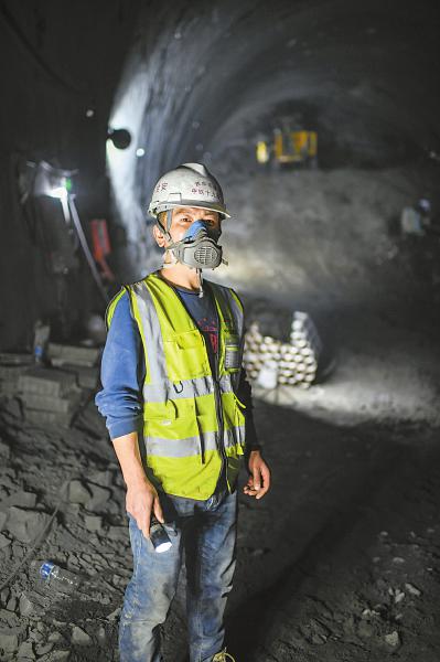 8月13日,值班長陳亮在西寧至成都鐵路四川段紅原2號隧道內。他每日往返洞內數十次,工作超10小時,主要負責觀察施工情況及人員調度。何海洋 攝
