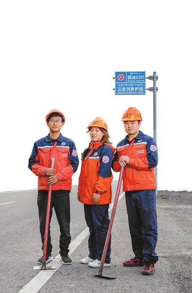 8月19日,甘孜州爐霍縣爐霍公路分局三岔河養護管理站,“90后”養護員袁明建(左)、尼馬翁姆(中)、蘭勛常年駐守,保障國道317線的暢通。何海洋 攝