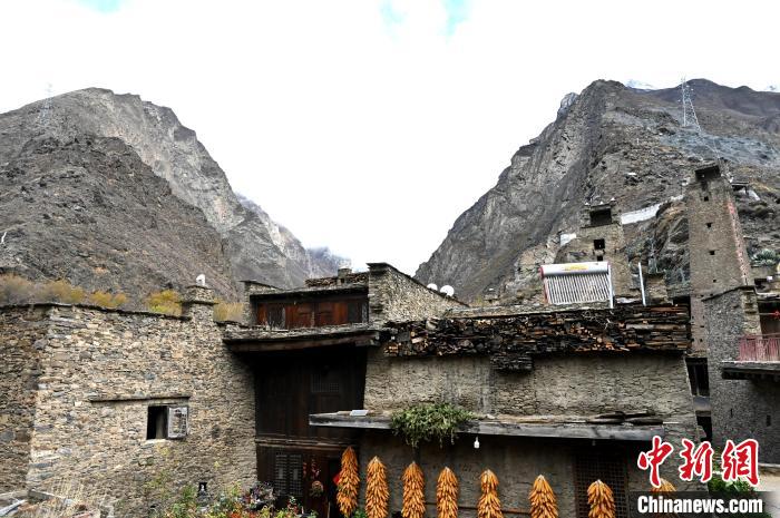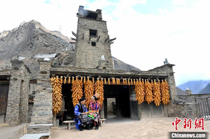 25日,桃坪羌寨內的居民正在聊天。中新社記者 安源 攝