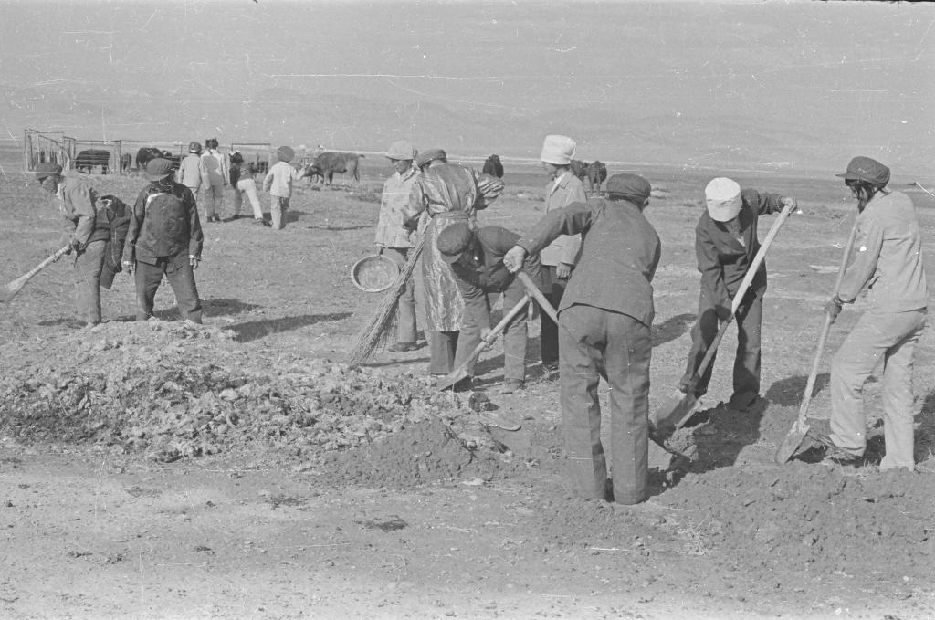 20世紀50年代,群眾在香日德開墾農田(資料照片)。新華社發